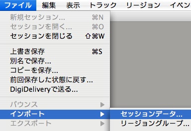 今開いているセッションに、他のセッションのデータをインポートするわけです。