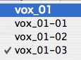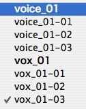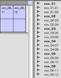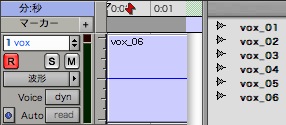 現在のトラック(名)である「vox」から派生したリージョンだけが表示されます。