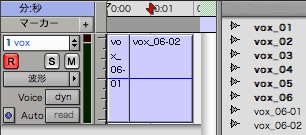 次に「voice」というトラック名前を「vox」に変更、レコーディングします。