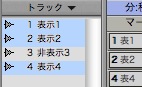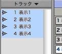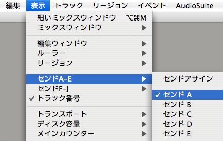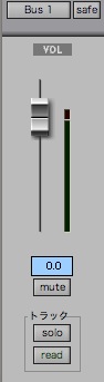 センドアサイン表示(ここでは「Bus 1」)の左側にある上下三角部分を